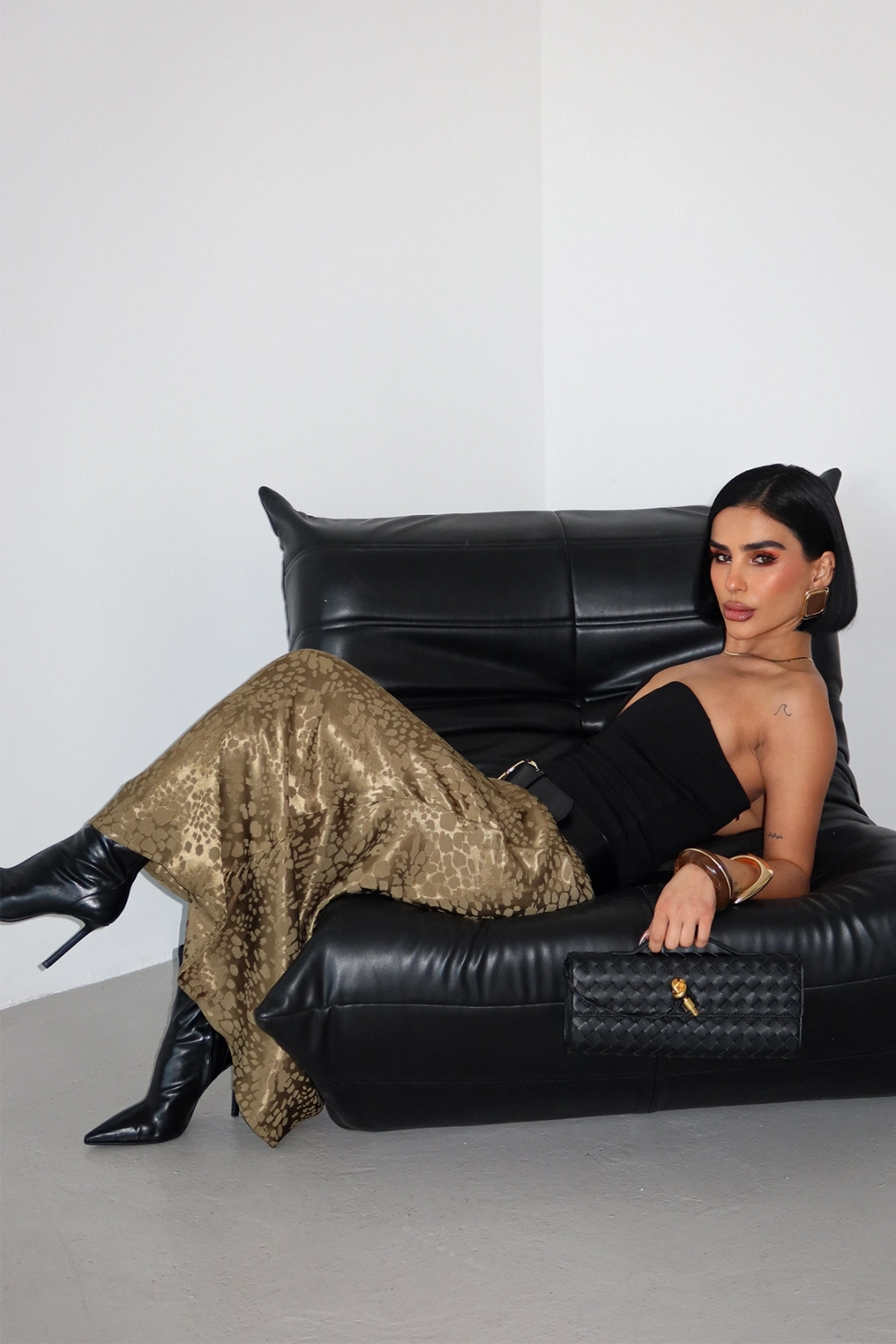 Viskalı'nın kaliteli işçiliği ve özenli detayları ile tasarlanan bu eteği gardırobunuza ekleyerek fark yaratabilir ve her kombinasyonunuzda şıklığınızı tamamlayabilirsiniz.