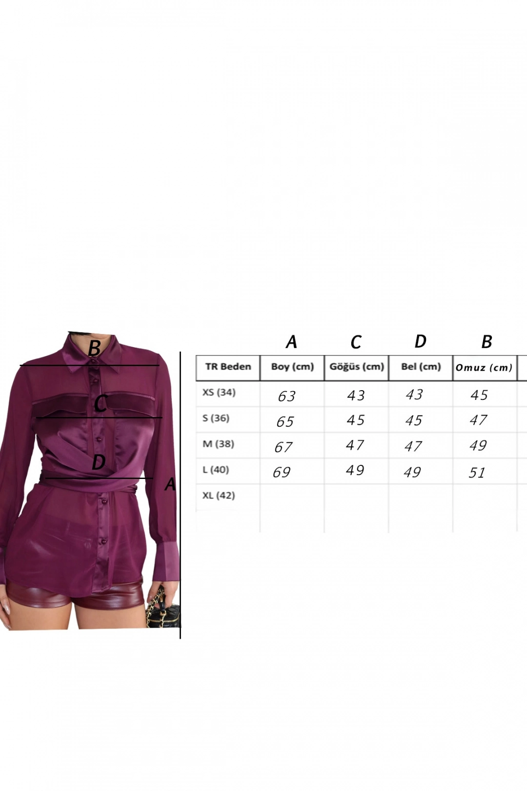 VİSKALİ'nin şık ve modern tasarımı olan Göğüs Detaylı Kuşaklı Tül Bordo Tasarım Gömlek, gardırobunuzun vazgeçilmezi olmaya aday!